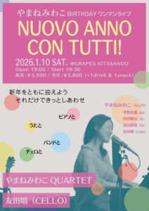 やまねみわこQuartetとチェロ友田唱が奏でる特別な新年を。